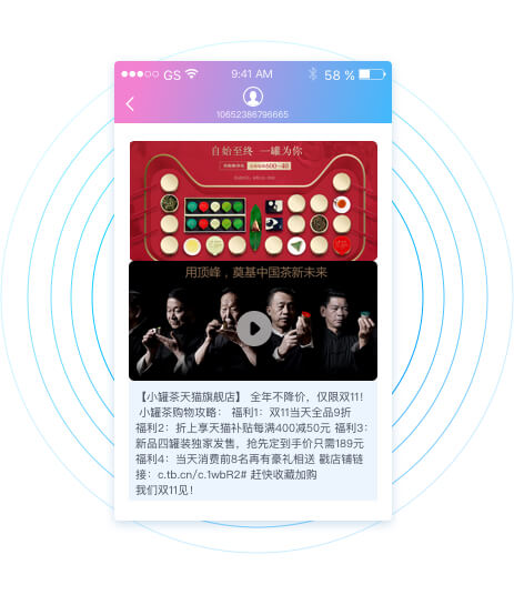 无需app、无需关注微信,通过短信的发送机制,到达率高